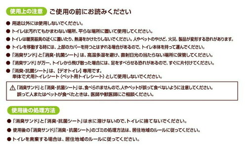 大型の猫ちゃんや肥満気味の猫ちゃんでも快適に排泄ができる猫用システムトイレです ●お手入れカンタン閉めきったお部屋でもニオわない、猫用のシステムトイレ ●広々快適な排泄スペースで大型の愛猫でも無理のない姿勢で排泄できます ●サンド飛び散り防止構造を採用し、高めの壁で砂の飛び散りをブロックします ●トイレが大きくなっても取替シートは1枚でOK デオトイレ本体サイズ ●高さ:約35cm(一番高いところ)●幅:約70cm●奥行:約47cm セット内容 ・トイレ本体:トイレ上部(カバー)トイレ下部(前後入れ替え式引き出し) ・ウンチ専用スコップ(本体上部に掛けられます) ・飛び散らない消臭・抗菌サンド2L×2(約1ヶ月分) ・消臭・抗菌シート4枚(約1ヶ月分) ※サンドとシートの交換の際は別売りのデオトイレ専用品をお使い下さい。